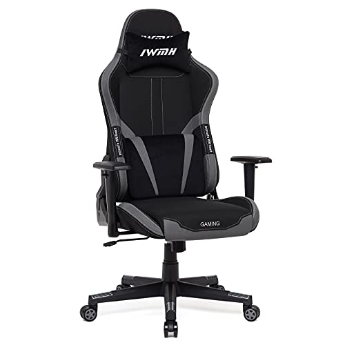 TELA CÓMODO: La silla gaming está cubierta de una tela suave y lisa en lugar de cuero, que tiene buena transpirablidad , no irrita la piel, por lo que puede ser duradera incluso en verano