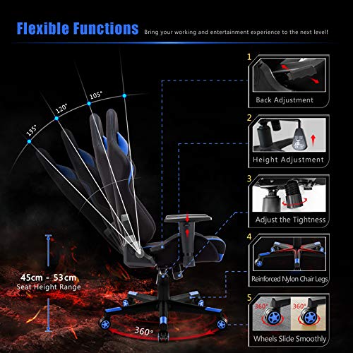 ▶AJUSTABLE: El diseño ergonómico del asiento le dará un placer y relajamiento cómodo en cualquier momento, la silla reclinable con ángulo de 135 grados hace su trabajo más eficiente.