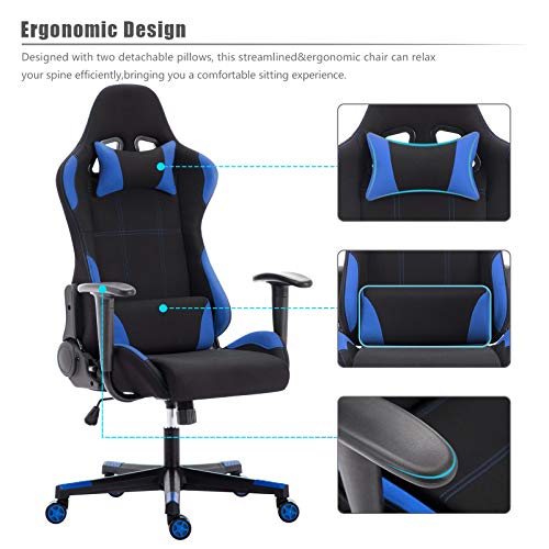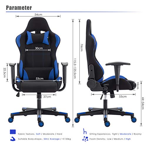 Transpirable — La silla utiliza tela flexible en lugar de cuero, El material de cuero tiende a secarse y a agrietarse, goteando la espuma interior, y es más propenso a los arañazos que pueden afectar seriamente la apariencia de la silla. Con nuestro material de tela hace un gran trabajo de resolverlo. el tejido transpirable permite la circulación de aire, le ayudará a refrescarse incluso durante el verano, será durable y duradero.