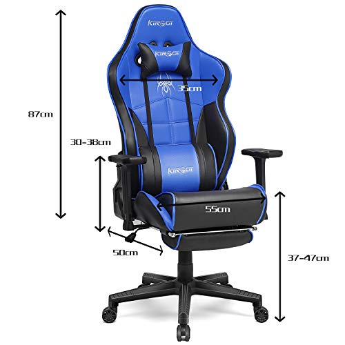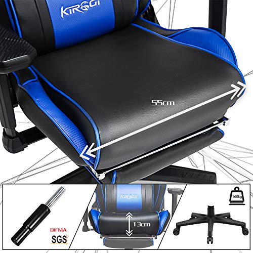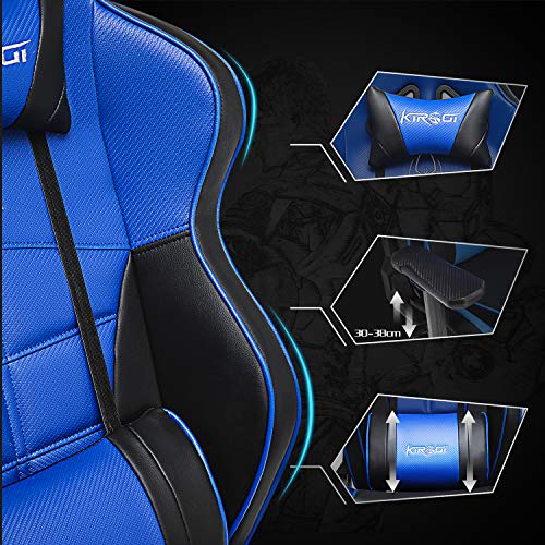 【Resiste 160kg para Gran Estabilidad!】Las sillas Gaming Kirogi pueden soportar hasta 200kg. Un cilindro de gas equilibrado de clase 4 de alta calidad con certificación SGS puede levantar la silla suavemente hacía arriba y hacía abajo. El asiento cuenta con una estructura metálica resistente, una base de 5 estrellas robusta y duradera, y una rueda de 360 grados de suave desplazamiento que ofrece una excelente estabilidad y movilidad.