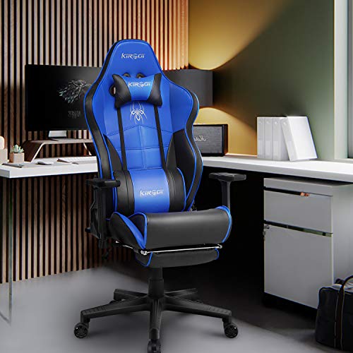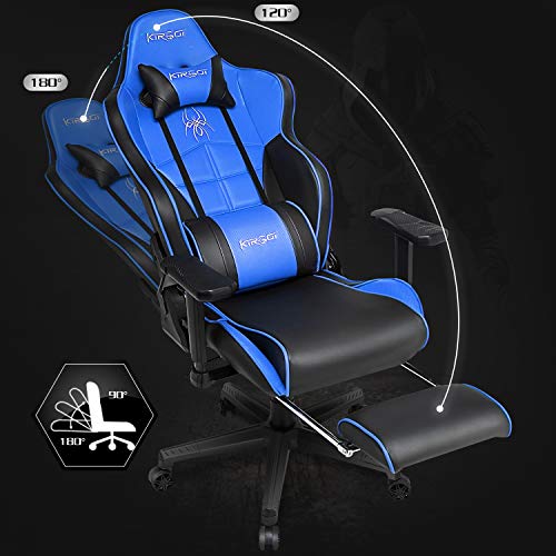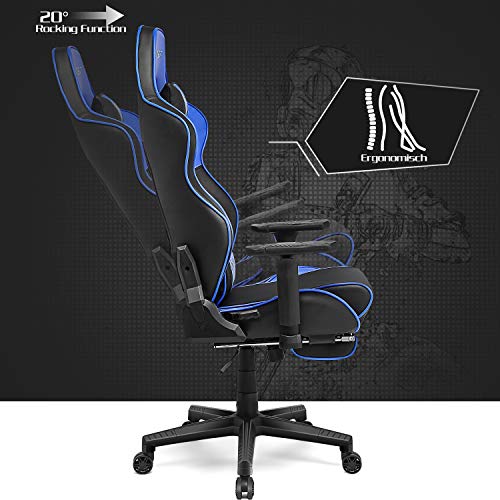 【iferentes aplicaciones para diferentes situaciones】La silla del jugador tiene una función de balanceo controlable que puede reclinarse hasta 180° como una cama. Ya sea que quieras trabajar, jugar, leer, ver televisión o tomar una siesta, sólo ajusta la silla a la posición que quieras. El reposapiés retráctil para relajarse. La almohada lumbar ajustable apoya tu columna vertebral en gran medida.