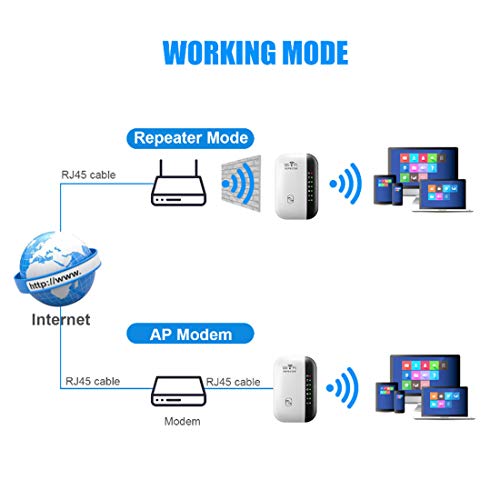 【Dos Modos de Trabajo】: Amplificador WiFi – repetidor y AP, se puede configurar el teléfono móvil / tableta / computadora, solo es necesario configurarlo una vez, se pueden usar todos los dispositivos inalámbricos.