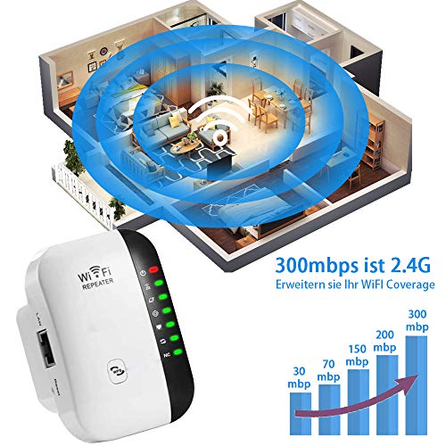 【Cobertura WIFI】: Wifi repeater con velocidades de hasta 300 Mbit / s, aumente su rango de WiFi existente, amplíe su WiFi para áreas de difícil acceso y elimine las zonas muertas de WiFi.