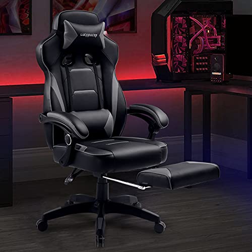 LUCKRACER Silla Gaming, Silla Gaming Reposapiés, Silla Ergonómico, Silla Gamer, Silla Oficina con Cojín Lumbar y…