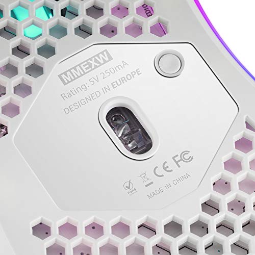 Mars Gaming MMEX Blanco, Ratón Gaming RGB, 32K DPI, Cable Feather, Switches Ópticos