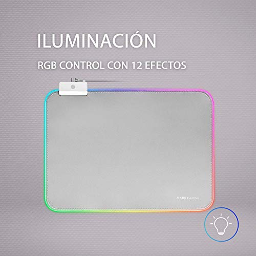 La alfombrilla Gaming MMPRGBLS con iluminación RGB control con 12 modos de iluminación está diseñada para que disfrutes de una experiencia Gaming única. Con unas medidas de 365x265x4 mm y una base de caucho anti-deslizante te asegura una libertad de movimiento sin preocupaciones