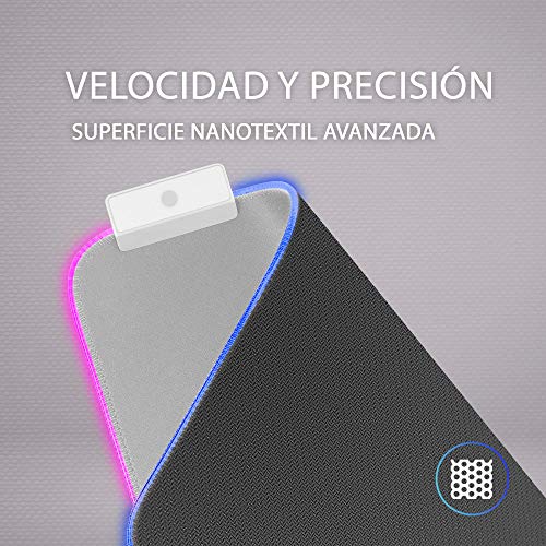ILUMINACIÓN RGB: Alfombrilla Gaming profesional con RGB control con fibra óptica y diseño óptimo; 12 modos de iluminación con botón de control