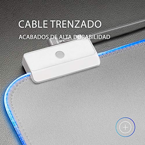 BORDES REFORZADOS: La alfombrilla Gaming MMPRGBLS cuenta con bordes reforzados con doble nylon anti-desgaste para asegurarte una mayor duración de tu alfombrilla; El cable trenzado incluido tiene una longitud de 1.5m