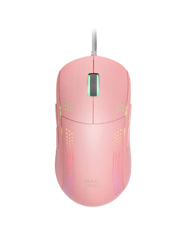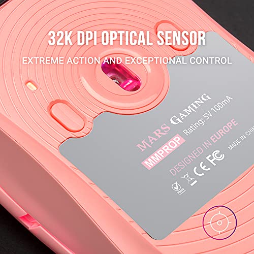 MARSGAMING MMPROP Rosa, Ratón Ambidiestro Ultra-Ligero, RGB Chroma, Óptico 32K dpi