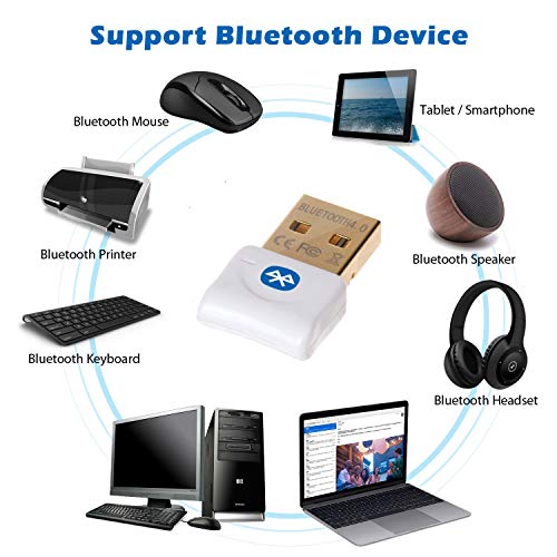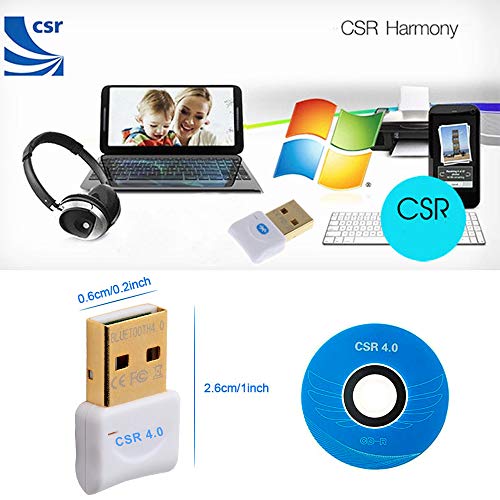 【Múltiples usos】 Bluetooth CSR 4.0 USB Dongle adaptador puede fácilmente añadir función Bluetooth para su ordenador, permite al ordenador conectar de forma inalámbrica más dispositivos Bluetooth como auriculares Bluetooth, altavoces, receptor, teclado, ratón, smartphone, tableta, impresora, proyector, controlador de juegos, controlador xbox uno y más dispositivos BLE (Bluetooth de baja energía).