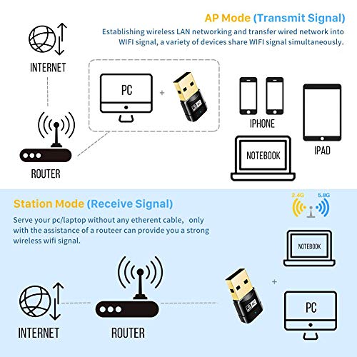 Estación/AP modo: Este adaptador wifi se puede como señal receptor en modo utilizar en el ordenador y portátil, que no tienen señal WLAN incorporado o débil, despedida de conexión de cable.