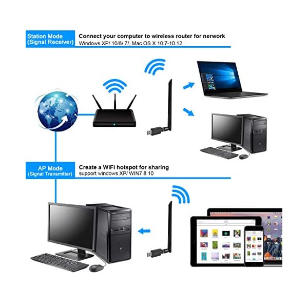 【Perfecta compatibilidad】Soporta Windows 10/8/7/XP, Mac OS, estándares IEEE 802.11ac,compatible 802/b/g/n periféricos;soporte la computadora, PC, ordenador portátil, computadora de escritorio y cuaderno etc.