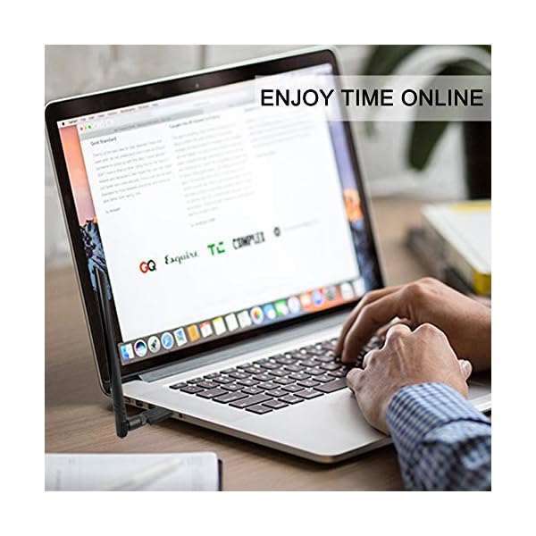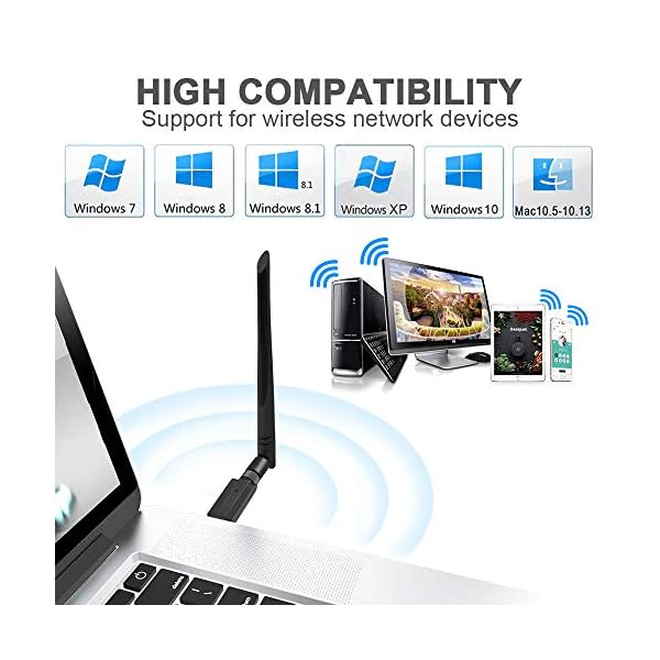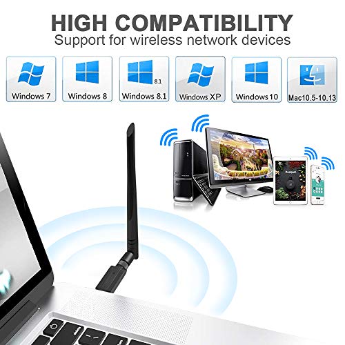 【Antena WiFi USB largo alcance 5dBi】La antena extraíble de 5dBi proporciona una gran capacidad de penetración y estabilidad. Se mantendrá una buena conexión cuando las señales son muy débiles. Tiene un mejor rendimiento de Wi-Fi que otros adaptadores Wi-Fi de 2dBi / 3dBi. Puede conectarse a Wi-Fi en su sótano o baño, incluso si su enrutador está lejos de su computadora.