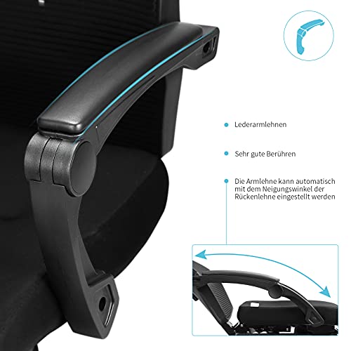 【Diseño Ergonomico】La silla oficina entera utiliza perfectamente la ergonomía, el diseño del respaldo en forma de S y el soporte lumbar ajustable pueden hacer que el cuerpo y la espalda se ataptan perfectamente, lo que le permite sentarse más tiempo y más saludable