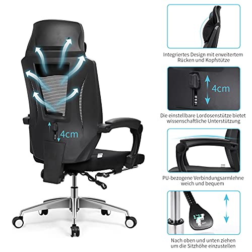 mfavour,Silla de Oficina,Silla de Escritorio Ergonómica,Silla Gaming con Reposapiés/Reposacabeza/Soporte Lumbar…