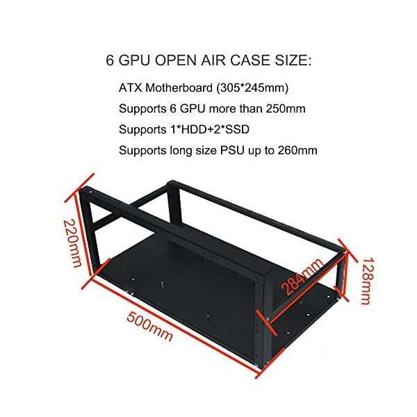 【 compatibilidad: 6 focos GPU ranuras (GPU no está incluido.) adecuado para GPU: 28 cm x 4.5 cm/11 «X1.8» (la GPU con bar es necesario si la longitud de GPU es de menos de 25 cm/9,8 «, que no está incluido)