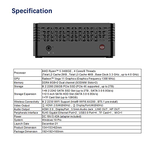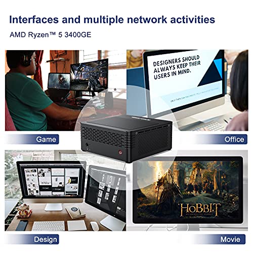 【Procesador más rápido】 Windows 10 Pro preinstalado (64 bits) y equipado con un procesador AMD Ryzen 5 3400GE. Esta es la frecuencia de funcionamiento básica de 3,3 GHz, que se aumenta a 4,0 GHz en modo Turbo. La PC también es compatible con WiFi de doble banda de 2,4G + 5G, BT5.1 y LAN de 1000 Mbps. Funciona más rápido, más fluido y le brinda una buena experiencia de usuario.
