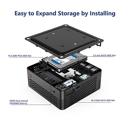 【Expansión de capacidad】 16 GB de RAM, 256 GB de espacio de almacenamiento. También puede agregar un disco duro SATA de 2,5 pulgadas (hasta 2 TB), una unidad de estado sólido M.2 2242 SATA (hasta 2 TB) y una tarjeta TF (hasta 128 GB) Numerosos métodos de expansión pueden darle a su Mini PC más espacio de almacenamiento y más tareas útiles.