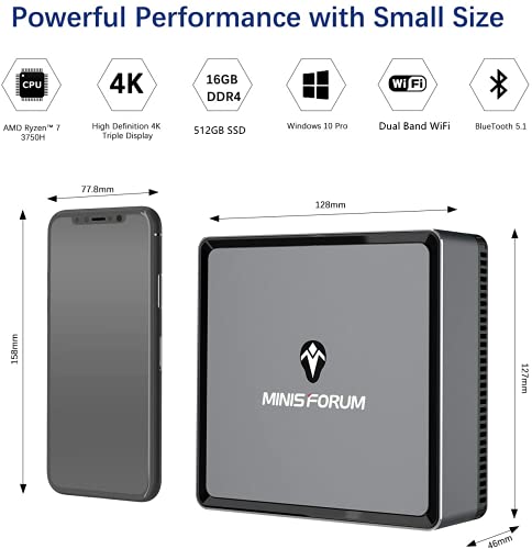 Mini PC, procesador AMD Ryzen 7 3750H de Cuatro núcleos, Mini computadora de Escritorio DDR4 / 512GB SSD de 16 GB…