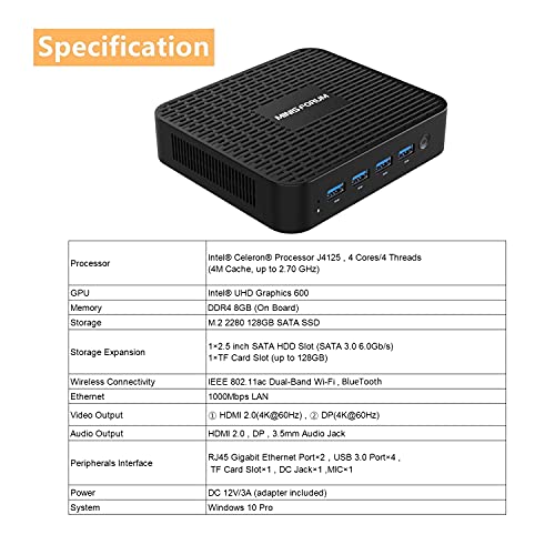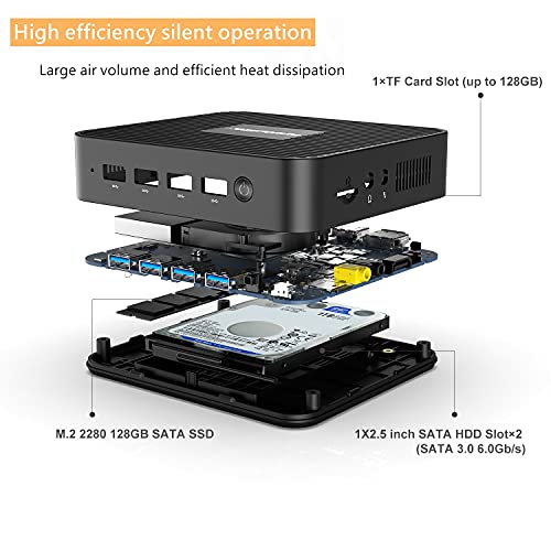 【Memoria extra grande y ampliable】 La PC de escritorio equipada con SSD M.2 2280 SATA de 128 GB de memoria y 8 GB de RAM. La memoria se puede ampliar con una tarjeta TF o un disco duro SATA de 2,5 pulgadas (SATA 3.0 6.0Gb / s). Transferencia de archivos o reproducción de video, ¡es rápido de resolver!