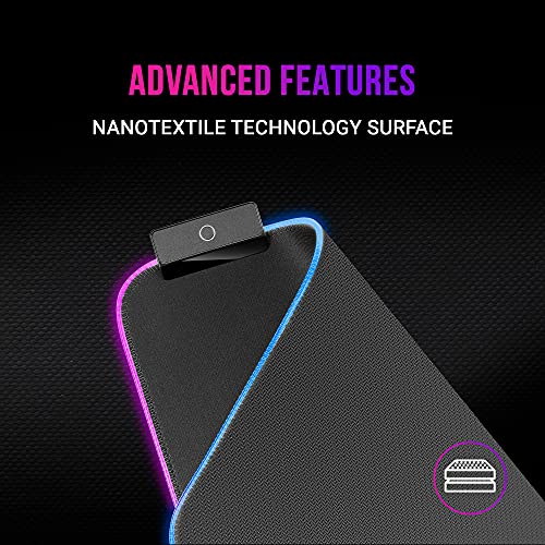 ILUMINACIÓN RGB: Alfombrilla Gaming profesional con RGB control con fibra óptica y diseño óptimo; 12 modos de iluminación con botón de control