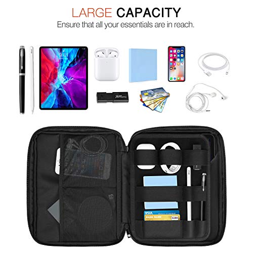Compartimento conveniente: Tiene un bolsillo principal para tableta. Otro bolsillo de malla elástico para organizar teléfonos móviles, cables USB, auriculares, carteras, tarjetas de crédito, tarjetas bancarias, energía móvil, cargadores, unidades USB, bolígrafos, monedas y más.