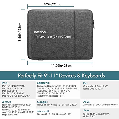 Compatibilidad – La funda para portátil está diseñada para iPad Pro 11 M1 2021″, iPad 8ª 10.2 2020, iPad Air 4ª 10.9 2020,Pro 11″ 2020/2018, iPad Air 3 10.5″ 2019, iPad 10.2″ 2019, iPad Pro 10.5″, iPad 9.7″, iPad Air 2 9.7″, iPad 4/3/2 9.7″, Samsung Galaxy Tab S6 Lite 10.4″ 2020, Tab S6 10.5″, Tab S3/S2 9.7″, Tab S4 10.5″, Tab E 9.6, Tab A 10.1″, Tab A 9.7″, Tab S5e 10.5″, Tab Pro 10.1″, Tab 2 10.1″, Tab Note 10.1″, Surface Go 2 10.5, Surface Go 10″, Tab 4 10″, Tab M10 Plus 10.3».