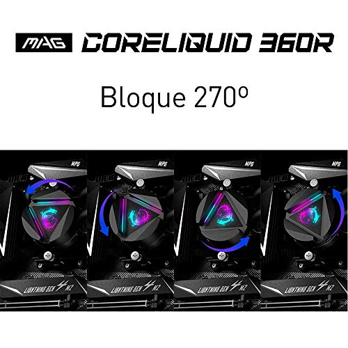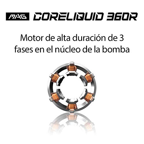 La refrigeración líquida MAG CORELIQUID Series tiene todo lo que buscas, materiales de alta calidad que facilitan la disipación del calor de forma extremadamente efectiva. Cómo no, cuenta con iluminación ARGB y un bloque capaz de rotar hasta 270 grados. El diseño del bloque es único y asimétrico. Cada componente individual de MAG CORELIQUID Series ha sido diseñado con un único fin: Conseguir la mejor disipación.
