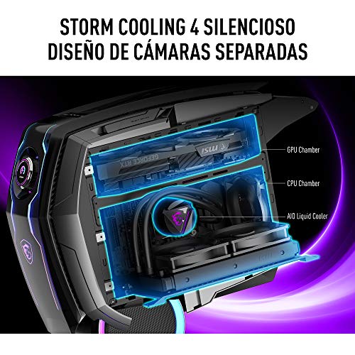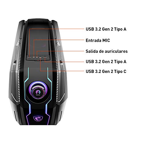 El sobremesa gaming, el MSI MEG Aegis Ti5, es potente y interactivo en la industria gaming. Equipado con el Intel Core i9 de 10a generación de la serie K y la tarjeta gráfica Nvidia Ampere MSI GeForce RTX 30, este sobremesa te hará disfrutar de cualquier juego como nunca, abriéndose paso a través de todos los retos de renderizado.