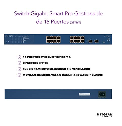 Gigabit Ethernet: switch de 16 puertos Gigabit con 2 puertos SFP Gigabit en formato de montaje en bastidor 1 U