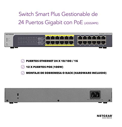 Alimentación a través de Ethernet: switch de 24-puertos Gigabit Ethernet con 16 puertos PoE (802.3af) que proporcionan hasta 15 W por puerto con un ahorro de potencia PoE total de 100w