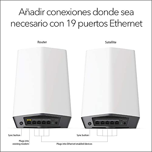 Velocidad de red multi-gigabito: 4x 1 GBit y 1x 2,5 GBit de conexiones de red en el router y en cada satélite para conexiones optimas por cable sin pérdida de ancho de banda para los dispositivos WLAN
