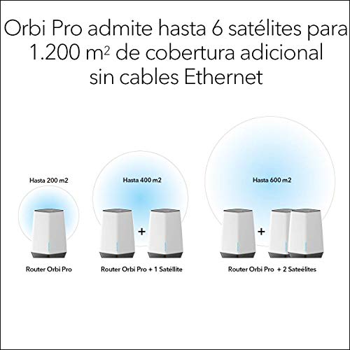 Compatibilidad: El satélite adicional es compatible con los sistemas Orbi Pro WiFi 6 (no funciona con Orbi Pro WiFi 5 u otros sistemas Orbi Home)