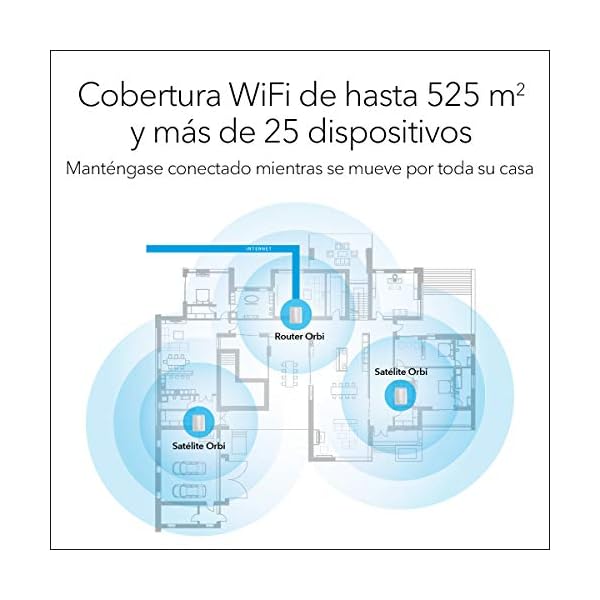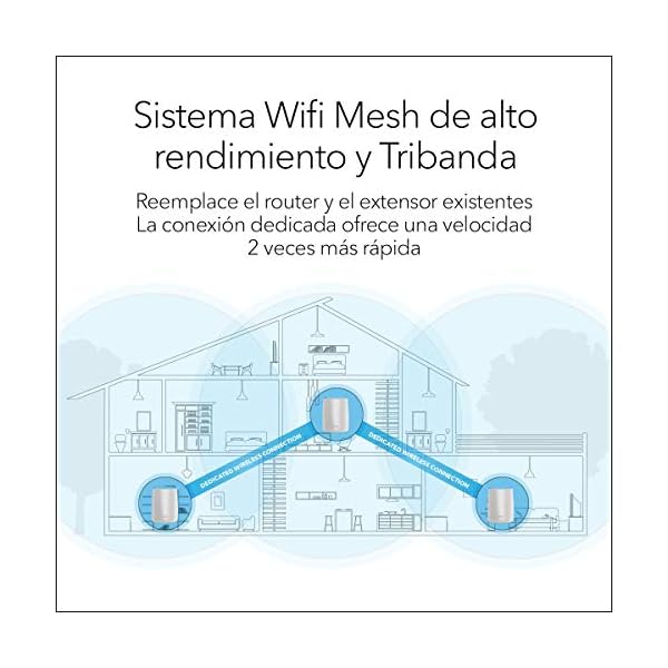 No más zonas sin wifi: cobertura wifi mesh de hasta 525 m2 y más de 25 dispositivos; la tecnología mesh le ayuda a mantenerse conectado mientras se mueve por su casa utilizando un único nombre de red