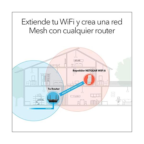 El extensor en malla netgear 4-stream wifi 6 (eax15) crea una poderosa red wifi mesh para una mayor cobertura en su hogar.