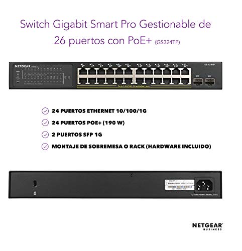 24 puertos Gigabit 10/100/1000BASE-T RJ-45: obtenga toda la conectividad que desea para sus dispositivos en todos los puertos Gigabit Ethernet sin congestión y en modo dúplex completo