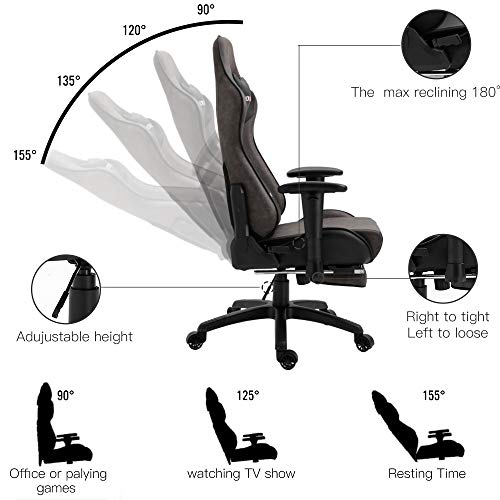 ♫ Cómodo: en la fatiga, es como una cama, puedes dormir en paz (cuero sintético de 90 a 180 grados de ajuste del respaldo y reposapiés retráctil). En el tiempo de ocio, también puedes masajear (un masaje lumbar) cuando juegas, puede darte un apoyo perfecto. (360 grados de rotación, altura ajustable, almohada de cintura ajustable y almohada de cabeza)