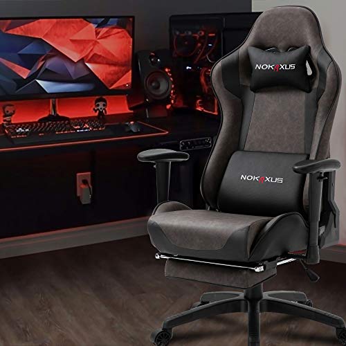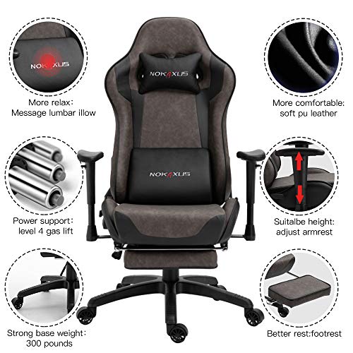 Nokaxus Silla de Oficina Silla de Computadora Gaming con Soporte Lumbar de Masaje y Reposapiés Telescópico Cuero PU…