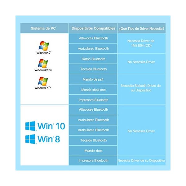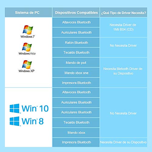 【Paquete& Servicios】En el paquete incluyen un 1Mii B04 adaptador Bluetooth USB, un CD driver y un manual. 1Mii B04 tiene 12 meses de garantía(reembolso). Puede descargar el driver: Google Drive: drive.google.com/drive/folders/1uxWjNFPAK9l0_AHNT_E2ZcpD7uIJqK9P?usp=sharing