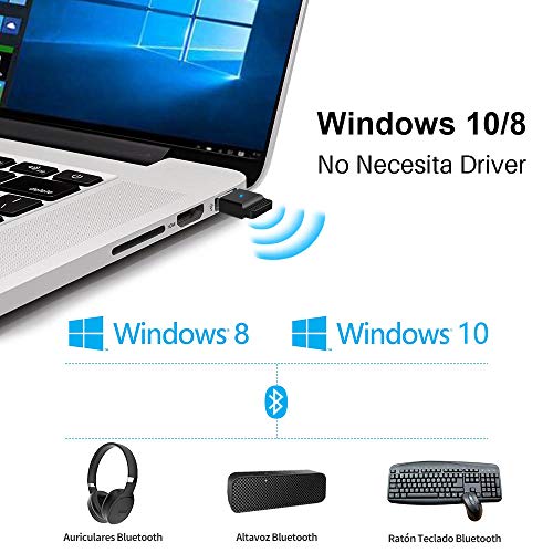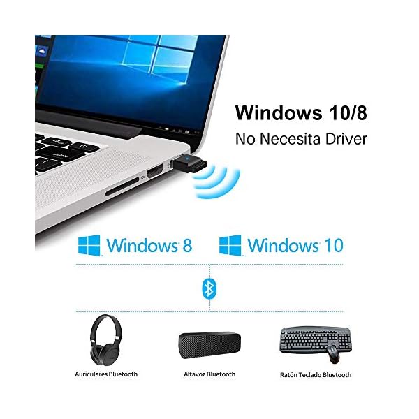 【USB Bluetooth para PC】Introduzca este USB Bluetooth a su PC que no tiene Bluetooth, ya su PC puede conectar con teclado& ratón Bluetooth (NO dispositivos 2.4G), impresoras BT, altavoces/ auriculares Bluetooth y otros BLE (Bluetooth de bajo consumo). NO es compatible con mando Xbox One S, Nintendo, TV, Mac ni sistema estéreo del auto.
