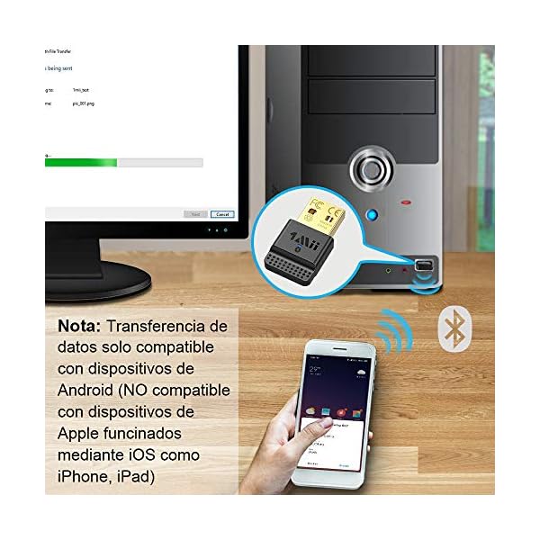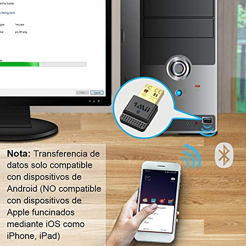 【Transferencia Inalámbrica】 Se realizará una transferencia de datos o audios desde su PC/ portátil a su tablet o móvil sin necesidad de cables gracias a este Bluetooth USB dongle fino y ligero.