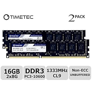 Timetec Hynix IC 16GB Kit (2x8GB) DDR3 1333MHz PC3-10600 Unbuffered Non-ECC 1.5V CL9 2Rx8 Dual Rank 240 Pin UDIMM PC…