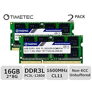 Timetec Hynix IC 16GB Kit (2x8GB) DDR3L 1600MHz PC3-12800 Unbuffered Non-ECC 1.35V CL11 2Rx8 Dual Rank 204 Pin SODIMM…