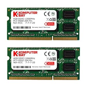 Komputerbay KB_8GB_2X4GB_DDR3_SO1066_2 – Módulos de memoria 8GB (2x 4GB) SODIMM DDR3 (204 Pines) 1066Mhz PC3 8500 para…