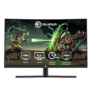 Millenium MD24PRO – Monitor Gaming para e- Sport de 23,6″ FHD 144hz Curvo con 4ms (1920 x 1080p, VA, 16:9, 2 x HDMI, Display Port, Sin Marco, Color Negro)