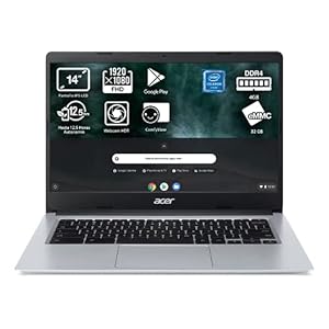 Acer Chromebook 314 CB314-1H – Ordenador Portátil 14″ HD, Laptop (Intel Celeron N4020, 4GB RAM, 32GB eMMc, Intel UHD Graphics, Chrome OS), PC Portátil Color Plata – Teclado Qwerty Español