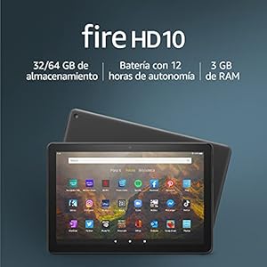 Tablet Fire HD 10 | 10,1″ (25,6 cm), Full HD 1080p, 64 GB, color negro, sin publicidad