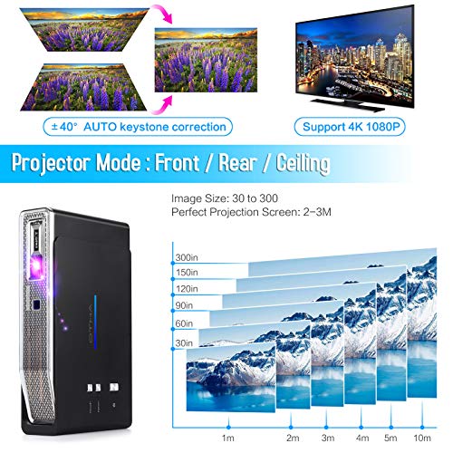 【Sonido Dolby y corrección automática de distorsión trapezoidal】El video inteligente soporta efectos de sonido Dolby. Estás en el corazón de cada película y serie. También es compatible con la tecnología de corrección de distorsión trapezoidal automática de 40 ° (también es compatible con el modo manual). El proyector portátil inteligente utiliza la última tecnología LED adoptada, las lámparas LED OSRAM funcionan durante 3000 horas, la fuente de luz LED 8 horas al día