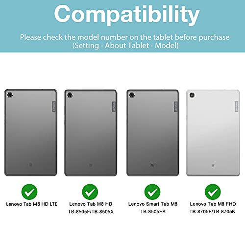 Bumper duradero diseñado para niños es compatible con Lenovo Tab M8 HD LTE 2021 / Lenovo Tab M8 HD TB-8505F TB-8505X / Smart Tab M8 TB-8505FS / Tab M8 FHD TB-8705F TB-8705N 8.0″ Android tableta. No es compatible con otros modelos o dispositivos