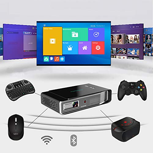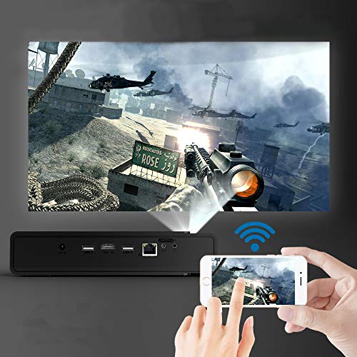 【Proyector Android V5 Nuevo Inteligente】 300 pulgadas Android Smart 3D Projector Support 4K (solo en modo HDMI). Conexión inalámbrica para iphone ipad Android Smartphone Tablet. Mayor brillo, colores vivos. Distancia focal más corta, 1: 1.19, 2.5 m de tiro de 100 pulgadas.